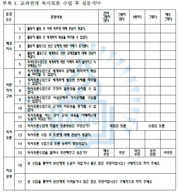 참고문헌: 교과연계 독서토론을 활용한 사회과 수업탐색 및 설계(홍종원 / 한국교원대학교 교육대학원)
