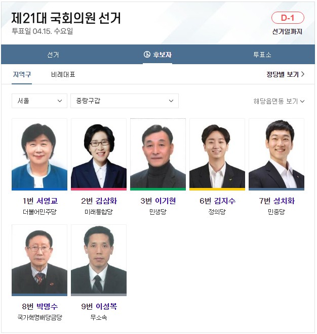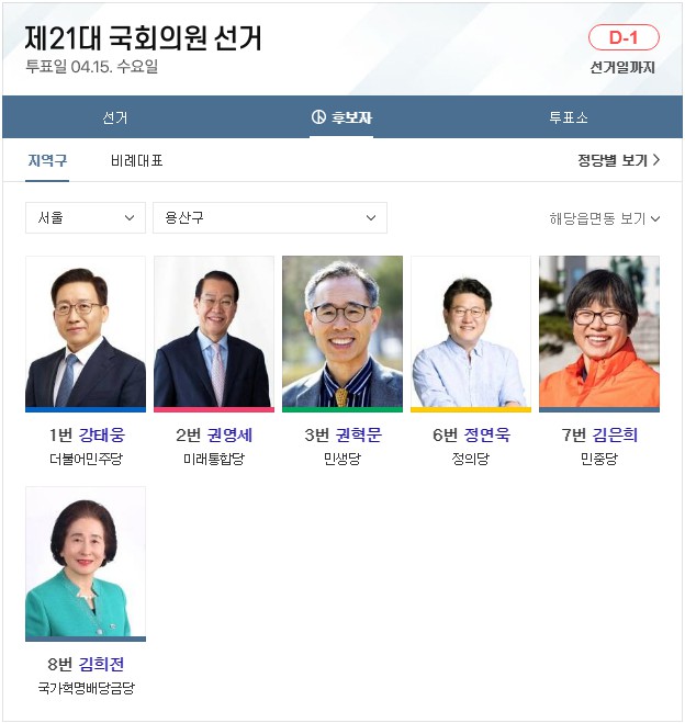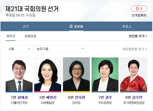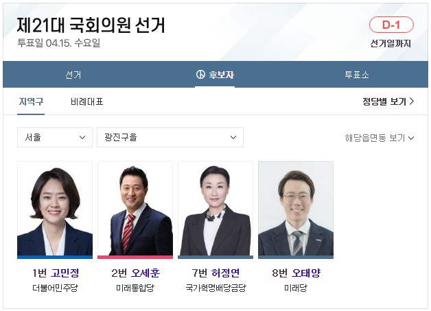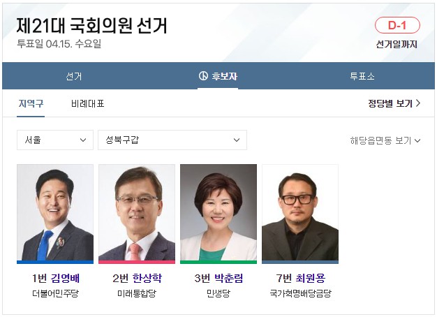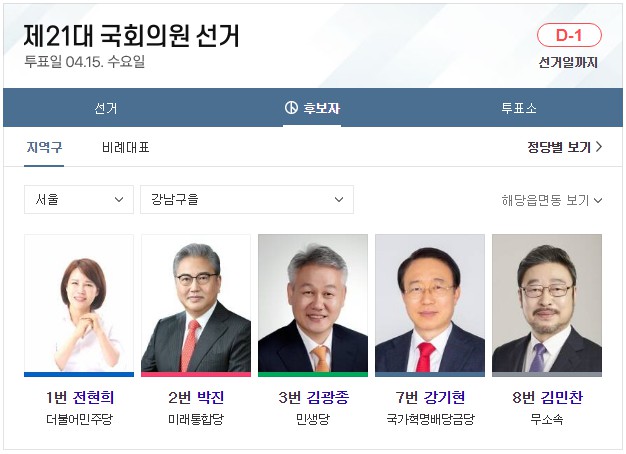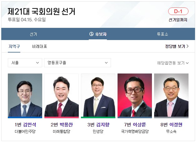 전국 총 국회의원 253석입니다. 비례대표는 총 47석입니다. 이 글 제일 아래에는 서울 49개 선거구 지역 국회의원 후보자들에 대해 올려놓았습니다. 글 아래로 가서 확인하시면 됩니다. 참고로, 이 글은 어느 한 정당의 이익을 위해 쓰지 않았음을 밝힙니다. 더불어 심리학 관점에서 국민의 마음은 어느 쪽으로 향할지 이론과 시각을 예측할 뿐입니다. 또한 글에는 색깔이 들어가지 않도록 했습니다. 시, 도교육감 선거(연두색), 시, 도지사 선거(백색), 구, 시, 군의장 선거(계란색), 지역 수시, 도의원 선거(연두색), 지역 구구, 시, 군의원 선거(청회색), 비례대표 시, 도의원 선거(하늘색), 비례대표구 시군의원 선거(연미색)까지 선거별 투표용지 색상이 총 7가지가 있습니다. 하지만 지금 쓰는 제21대 국회의원 선거 관련에서는 색상을 뺐습니다. 이런 작은 글자 색깔 하나로 어느 특정 정당을 지지하는 정치색으로 오해되지 않게 하기 위한 조치입니다.
