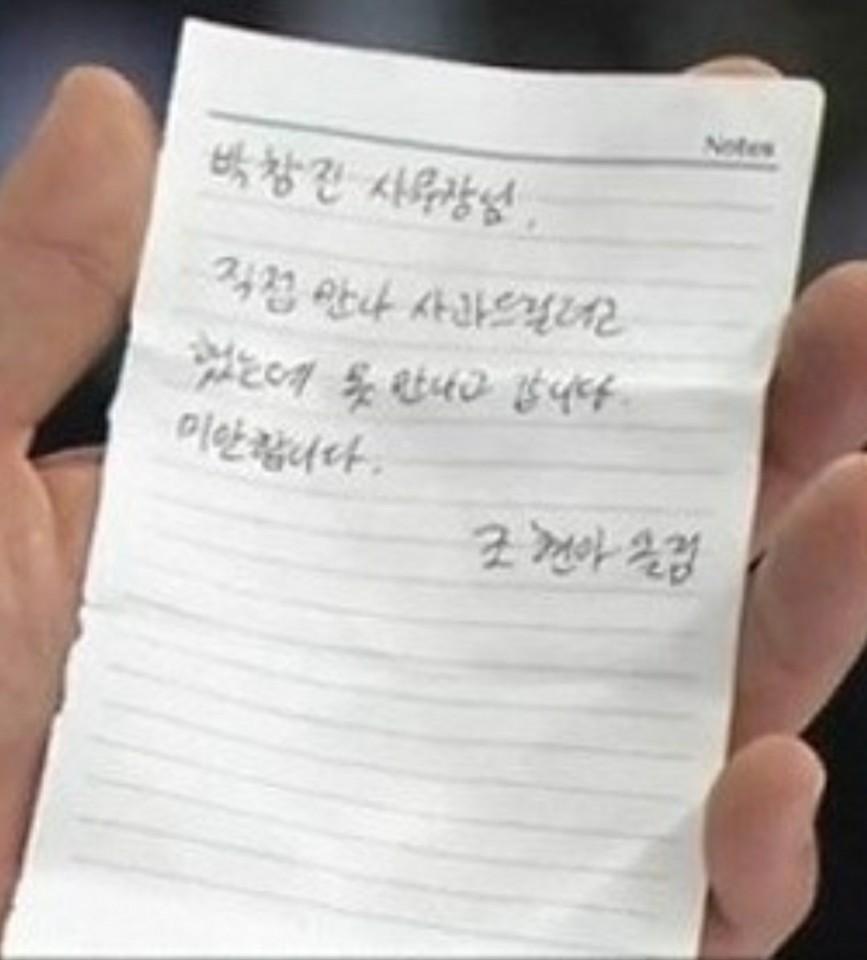 [이 쪽지에 대해서는 국민일보 쿠키뉴스에 '친절한 쿡기자'편에서 심리분석을 한 적이 있습니다. 그때 저의 분석은 이랬습니다. 사과문의 첫 줄인 수신자에 '박창진 사무장님'이라고 써져 있습니다. 얼핏 아무렇지도 않아 보이지만 상대방을 존중할 때 사용하는 조사인 '에게'를 높여 부르는 '께'가 빠져있습니다. 이것은 '님'을 붙였다고 높인 것이 아니라 자신보다 낮은 직책을 부르는 무의식적 무시가 포함되어 있다는 것을 드러내는 것입니다. 정말로 미안함을 느끼고 있다면 직접 만나 사과하려 했는데 못 만나고 간다는 한 마디로 끝나는 게 아니라 박 사무장의 기분을 의식해 이런저런 이야기를 주절주절 썼어야 합니다. 또 마지막에 '미안합니다'라는 표현도 당시 조현아 부사장의 마음이 보입니다. '미안하다'와 '죄송하다'는 듣는 사람에 따라 많이 달라집니다. '미안하다'는 윗사람이 아랫사람에게 쓰는 표현이고 아랫사람이 윗사람에게 사과할 때는 '죄송하다'라고 하기 때문입니다. 여기서 윗사람과 아랫사람은 나이와 직책일 수도 있지만 잘못을 저지른 사람과 사과를 받아야 할 사람으로 봤을 때는 조 부사장이 아랫사람이고 박 사무장이 윗사람입니다. 그럼에도 불구하고 사과문에 '미안하다'라고 한 건 아직도 자신이 지위에서 윗사람이라고 여기고 있는 것을 알 수 있습니다.]