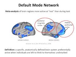 반대로 DMN 기능이 너무 활성화가 안 되면, 자페증이나 우울증이 오게 됩니다. 외부의 자극에만 민감하고 예민하게 반응을 하기 때문에 지나간 시간과 지금 이순간을 연결하지 못하게 됩니다. 앞으로 다가올 시간과 타인을 의미 있게 연결을 할 수가 없게 됩니다.