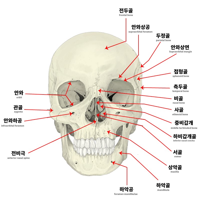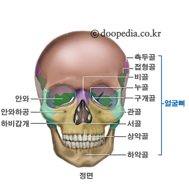 얼굴의 윗 부분을 가리키는 상악(maxillae)