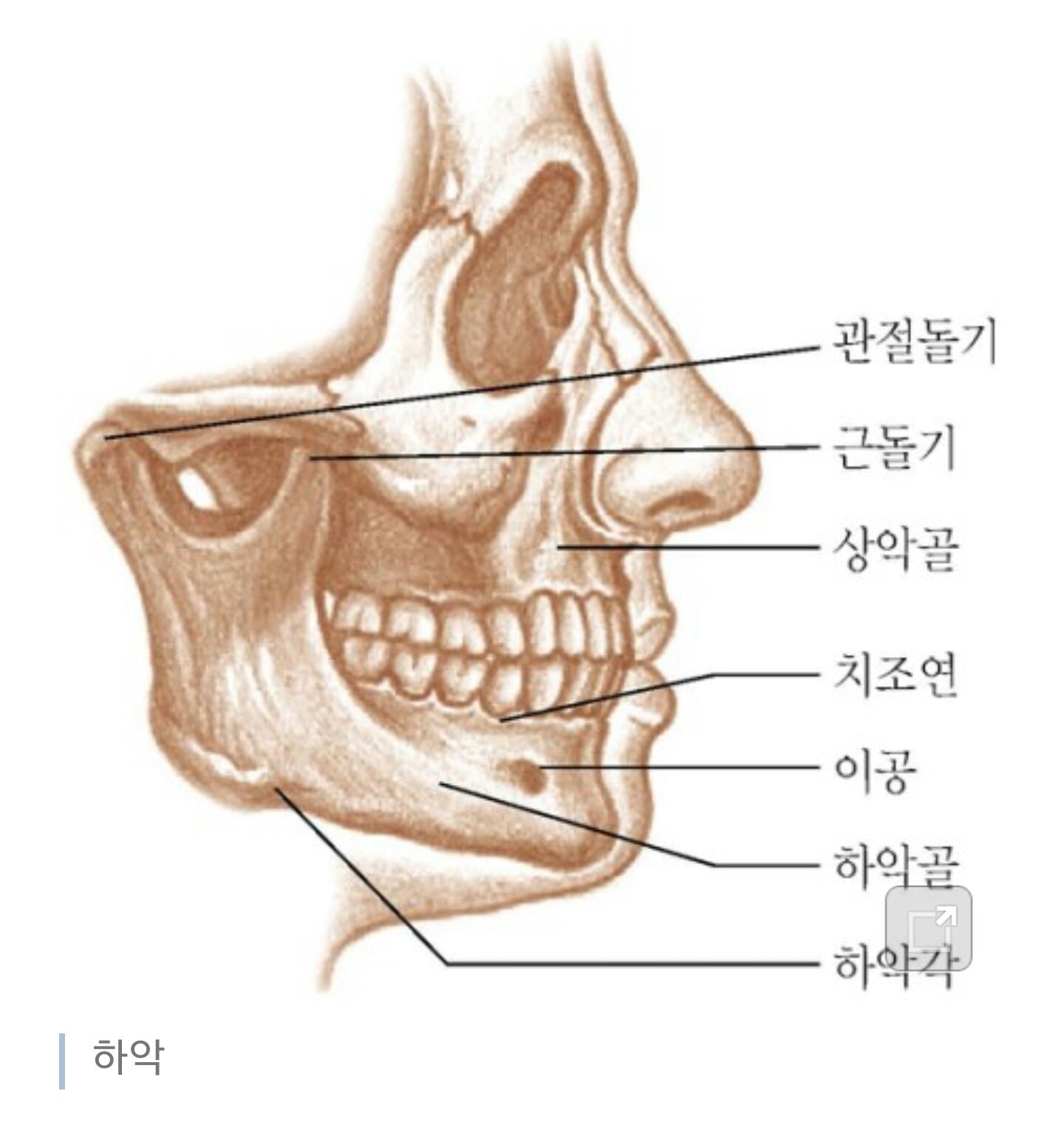 얼굴의 아랫부분을 가리키는 하악(mandible)