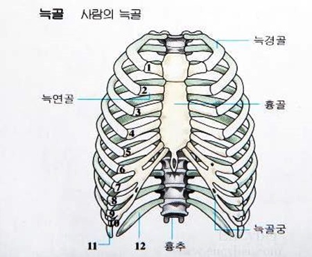 #늑골은 갈비뼈 혹은 늑골(rib)이라고 합니다.