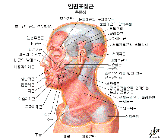 일반적으로 표정근과 저작근으로 머리의 근육은 구분됩니다.